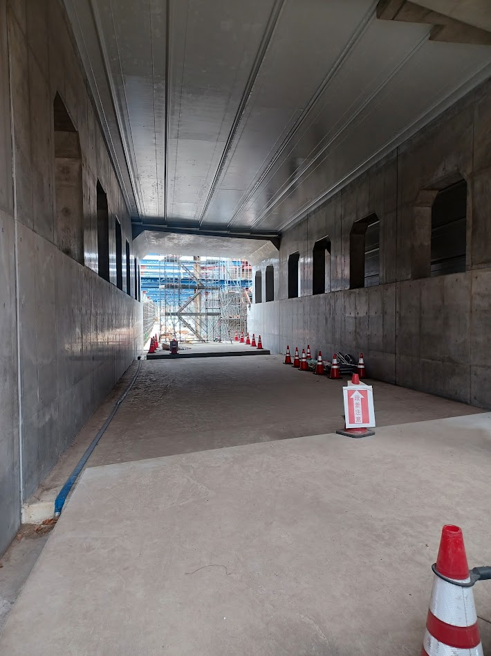 実はこの工事、最大の難関だった線路下のボックス構造物はおおむね完成しているそうです。 電車が通常通り走り続けるその真下で、静かに、かつ確実に巨大なトンネルが形作られた事実に、改めて鳥肌が立ちました。