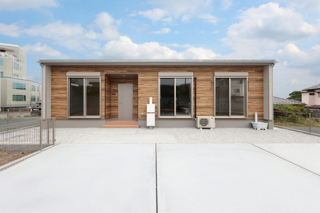 防草シート+砂利とコンクリートを組み合わせることで、入居後の草むしりの手間を軽減しつつ、清潔感のある状態を保ちやすい設計です。
