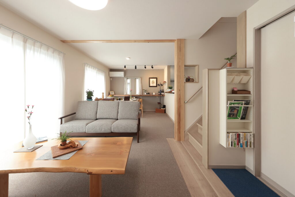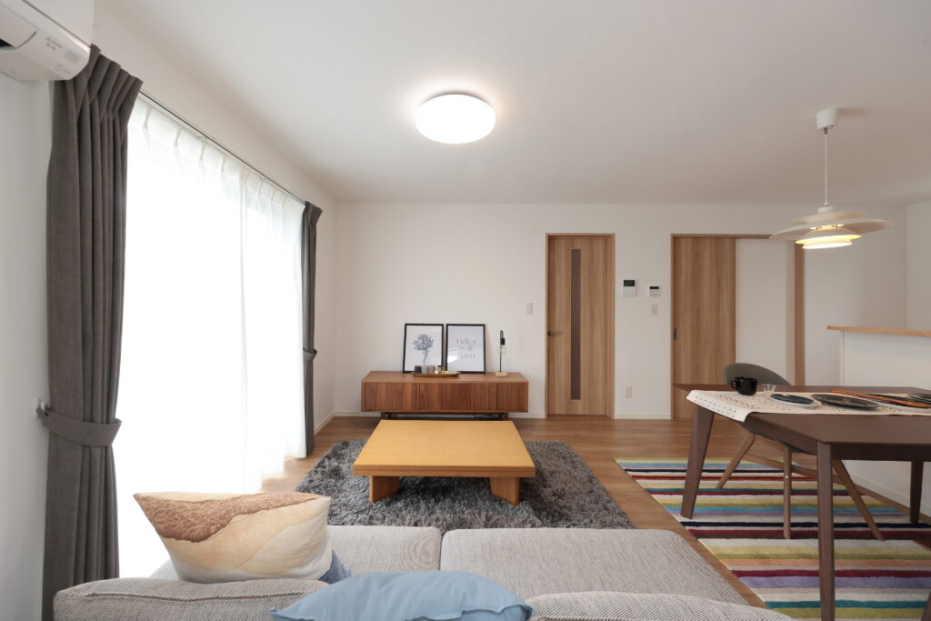 リビングには大きな掃き出し窓からたっぷりと陽光が降り注ぎます。