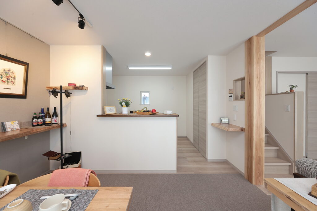 家族の時間が流れるリビング・ダイニングです。一見シンプルながら、細部にオーナーの美学が光ります。