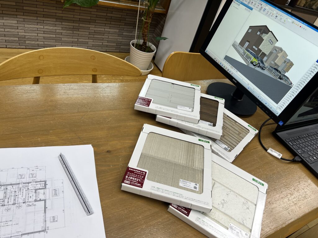 仕様打ち合わせとは、ご契約後のお客様と外壁や窓などの外部仕様と、床や壁紙などの内部仕様と、浴室やキッチンなどの設備関係と、照明やコンセントなどの電気関係、そしてブロックやポストなどの外構計画について決めていく打ち合わせです。