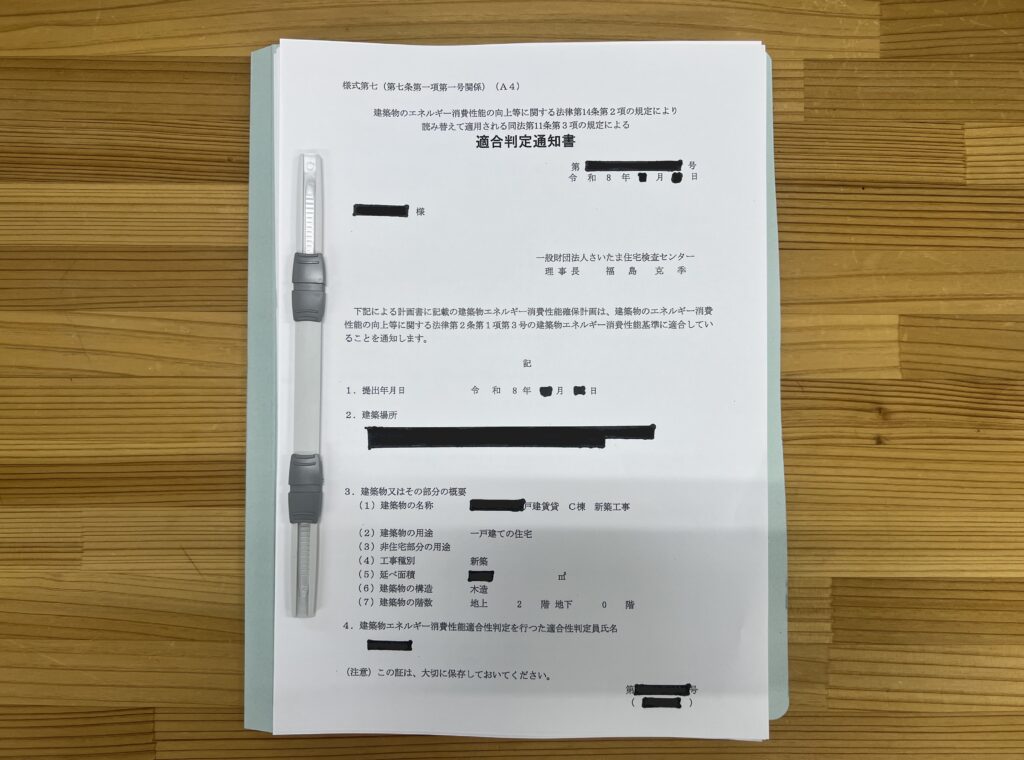 弊社の戸建賃貸では、建築物のエネルギー消費性能向上等に関する「適合判定通知書」という証明書を取得しています。