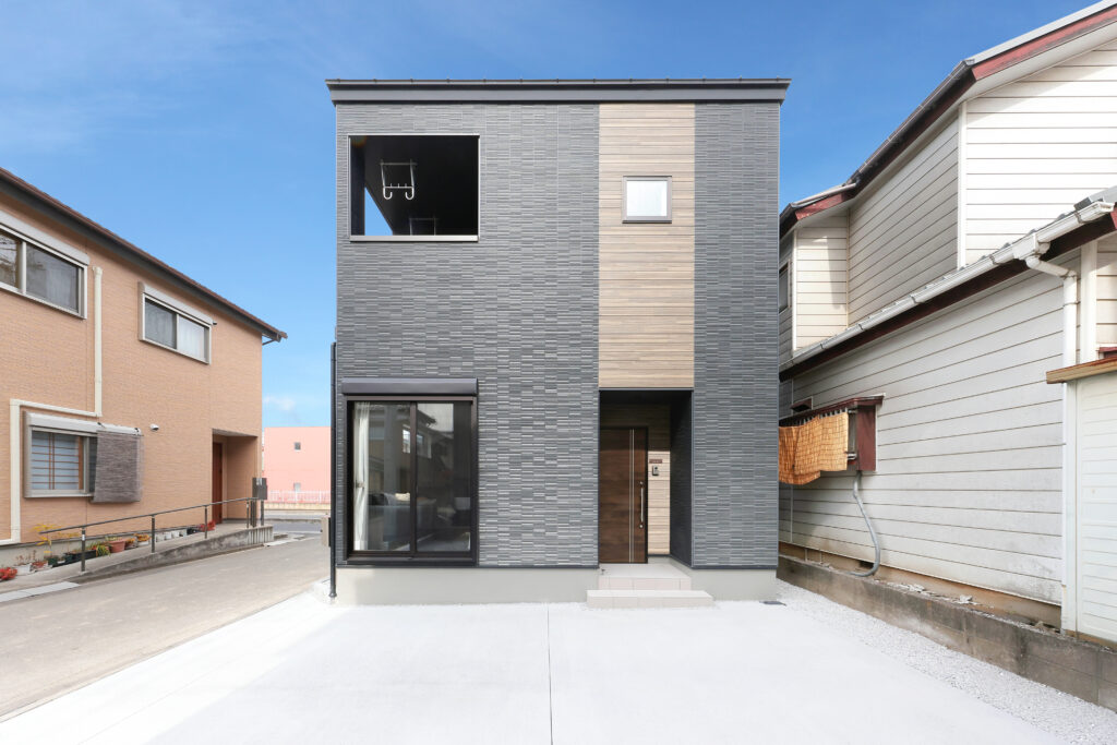土地の大きさは30.94坪と狭めでしたが、弊社商品ロータスがピタリと納まり駐車場も2台確保できています。施主様が土地探しで来社された時に、タイミング良く他のお客様から弊社の不動産課に土地売却のご相談があり、そのまま売買契約まで至りました。