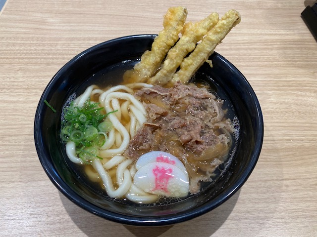 丼やおでんもあってメニューがとても豊富ですが、一番人気の「肉ごぼ天うどん」を注文してみました。