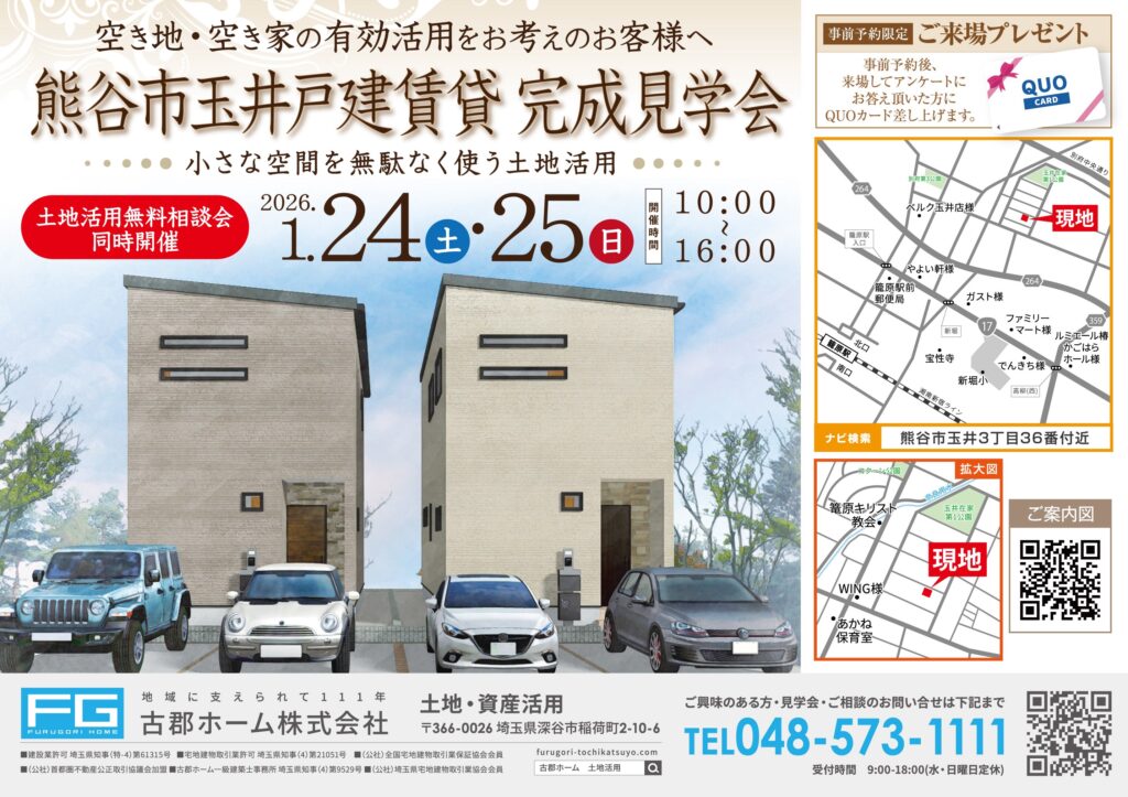 熊谷市玉井にて完成見学会・無料相談会を同時開催いたします!